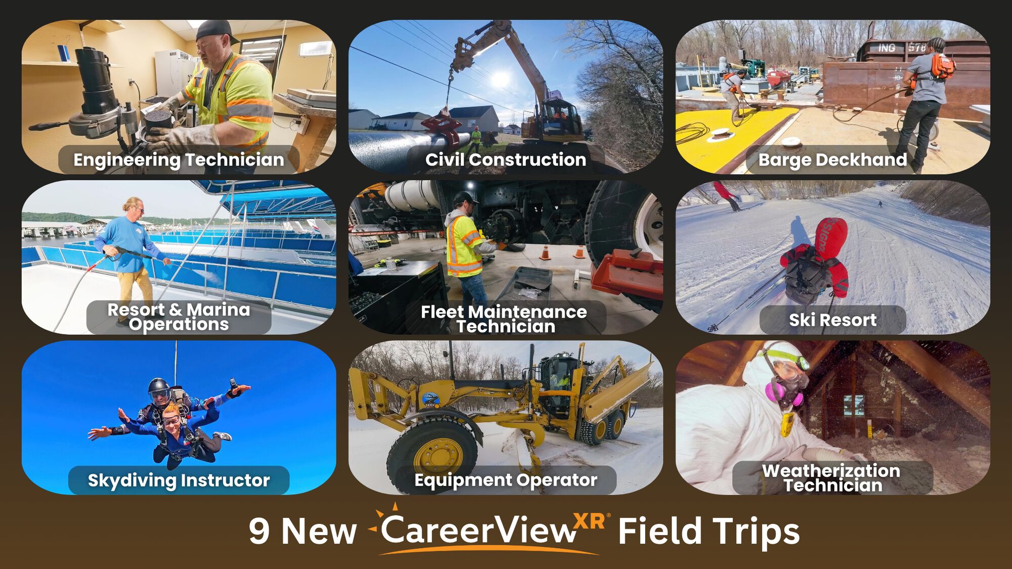 Come one - come all! All-new CareerViewXR field trips are ready to be explored! So, what's new? Which are you diving into first? With these new additions, the CareerViewXR library now features 105 different experiences. Once you've had a chance to dig in, we'd love to hear what you think about the new offerings!