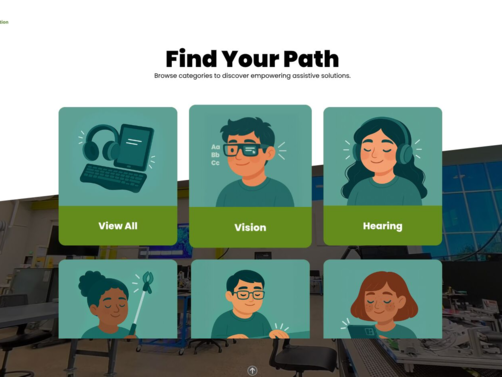 Find Your Path - Assistive Technology with XR for VR One of our first collaborative efforts for the XR for VR project is live! Dive in to this tour to explore examples of assistive technology that can make a difference in the workplace. Learn more about the XR for VR project here